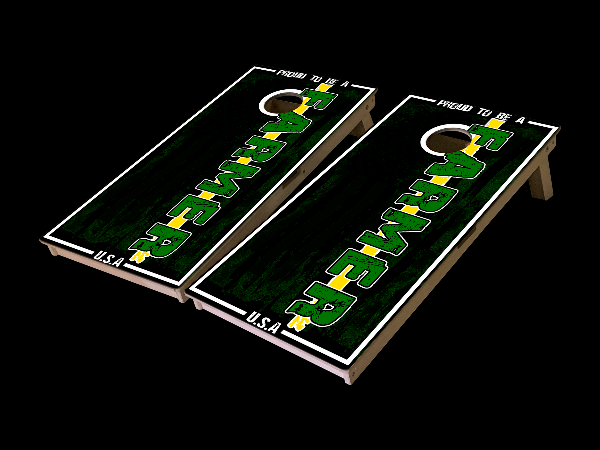 Premium cornhole boards featuring the Farmer (Green) design. These regulation-size boards come complete with bags, perfect for backyard games, tailgating, and outdoor events. Celebrate farming heritage with quality craftsmanship built for years of enjoyment.